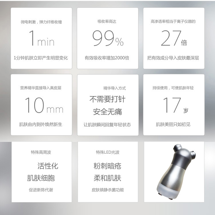 Zilbin needle-free plastic instrument Electroporation beauty instrument RF lifting and tightening facial massage introduction electrophoresis instrument