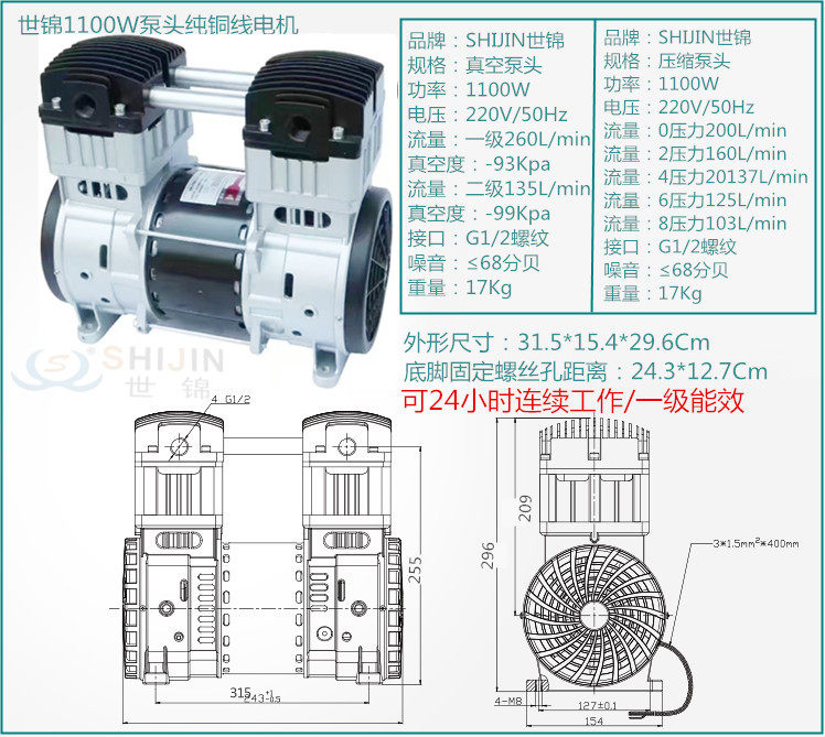 Shijin imported new air compressor pump head dental electric pump head oil-free vacuum pump negative pressure station