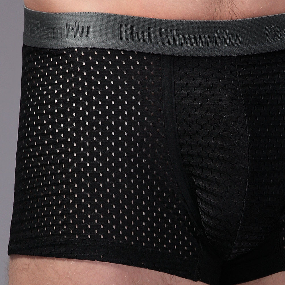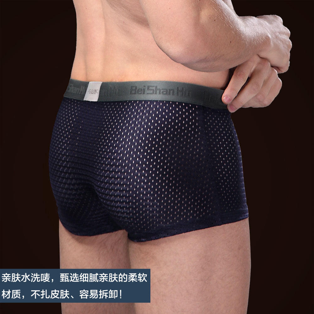 Beishanhu men's underwear four corners bamboo pulp fiber mesh sexy ice Silk Ultra-thin pores Plus size four corners pants