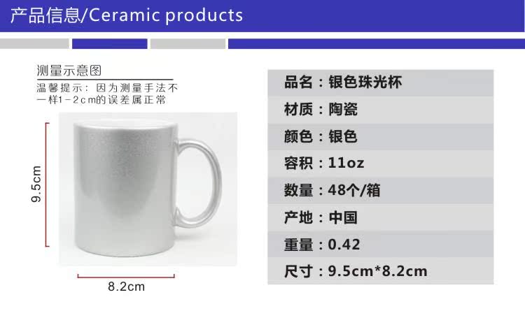 Heat transfer silver pearl cup silver cup thermal transfer coating cup Mark cup image transfer cup