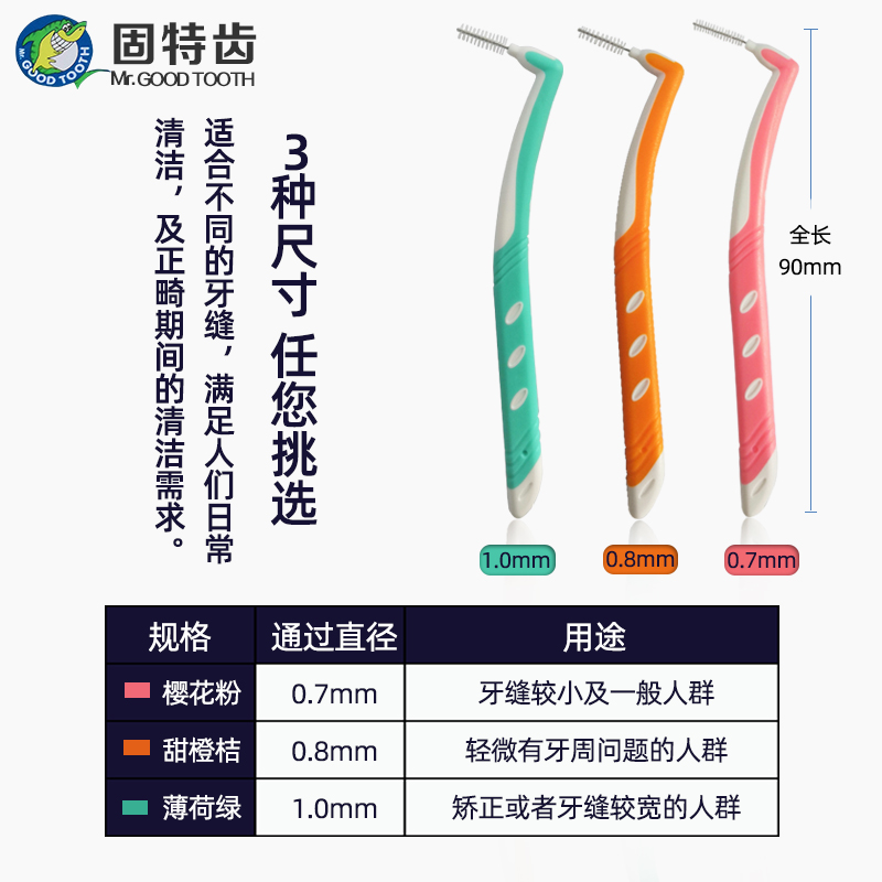 Solid tooth L type tooth slit brush 6 0 7-1 5mm 5mm orthodontic toothbrush straightening tooth tooth interdental interdental brush