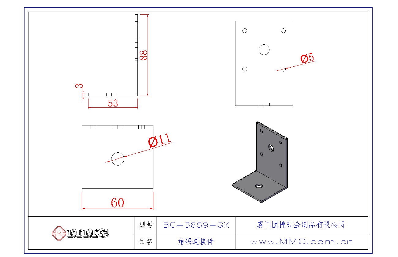 Type L Angle Iron Corner Yard Wood Villa Structure Five Gold Pieces Metal Connectors BC-3659 Gooseware Hardware MMC