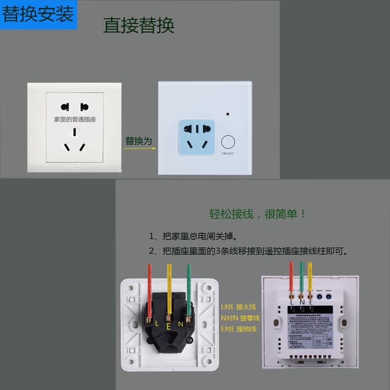 Wireless remote control switch remote control socket 86 type 220V wall 5-hole socket glass panel wearing wall remote control