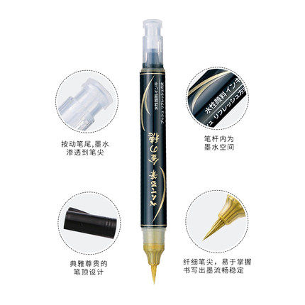 Japan Paitong scientific brush gold silver calligraphy soft pen scripture pen soft head portable beauty pen small regular script