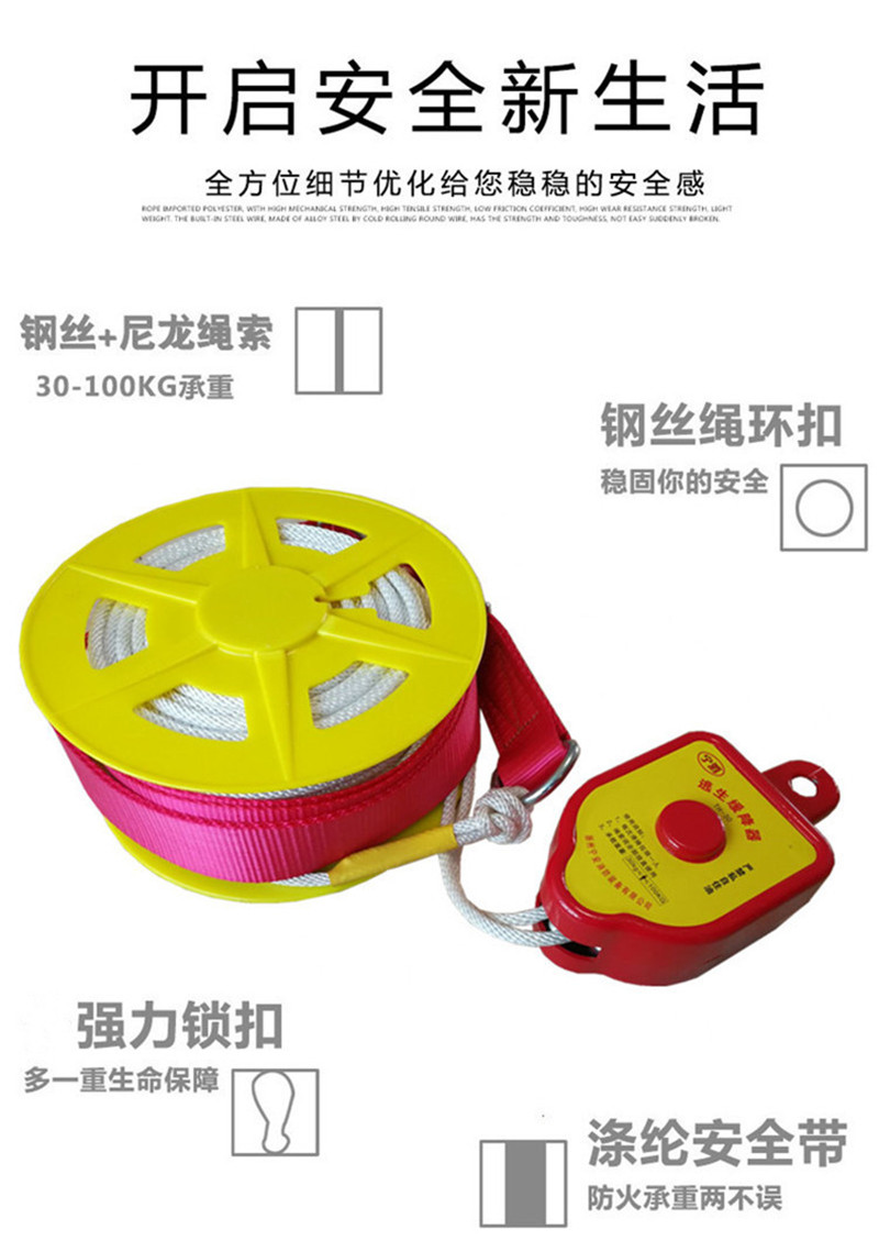 High-rise emergency fire escape rope safety life-saving rope wire rope family self-rescue slow-down device