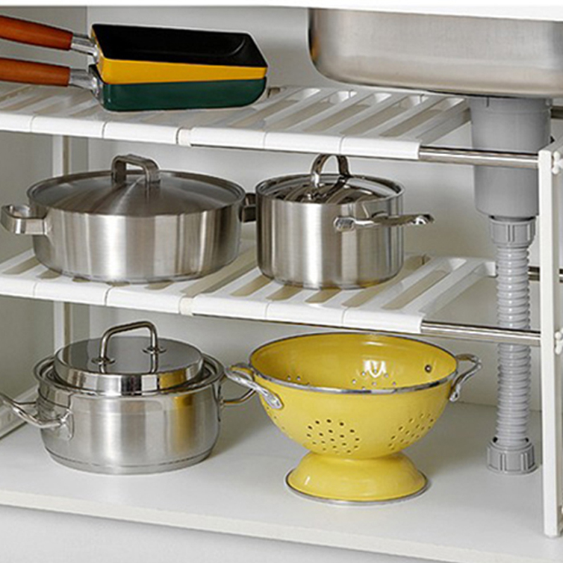 Multifunctional retractable sink shelf kitchen shelf storage shelf plastic floor kitchen storage layer shelf
