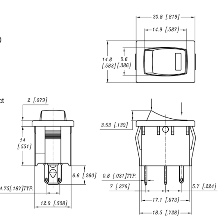 Taiwan LIGHT COUNTRY15*21 ship type switch with 3V square transparent window red light belt certification