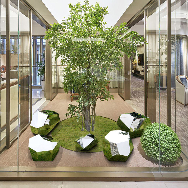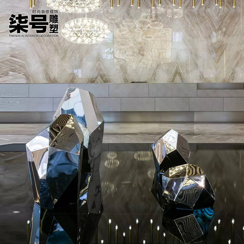 Hotel Lobby Villa Entrance Garden Decoration Furnishing Stainless Steel Stone Sculpture Pendulum custom metal artwork