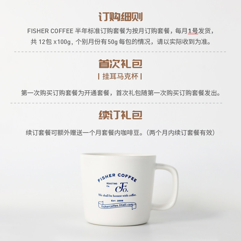 FISHERCOFFEE Hand Brewed Specialty Coffee Bean Standard Order Package 6 Months 12 Packs Shipped Monthly
