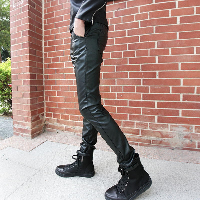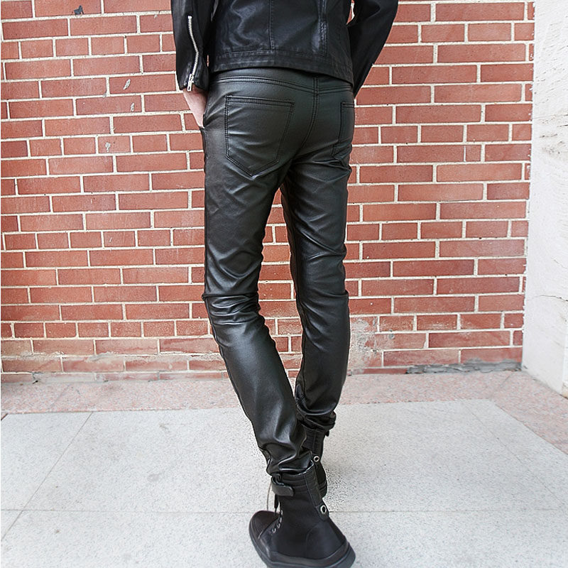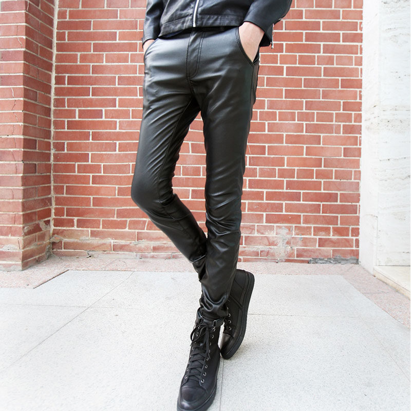 Winter slim-fit small feet PU leather pants men's velvet thickened trend warm motorcycle men's leather pants cycling motorcycle