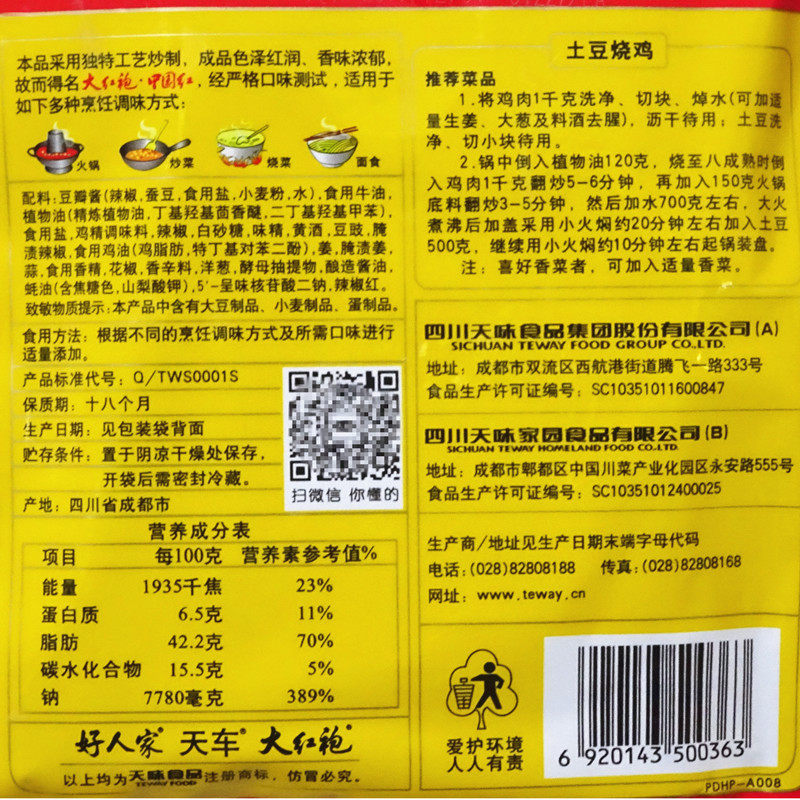 The whole 30 bags of large red robe hot pot soup 400g beef hot cold string cake commercial use