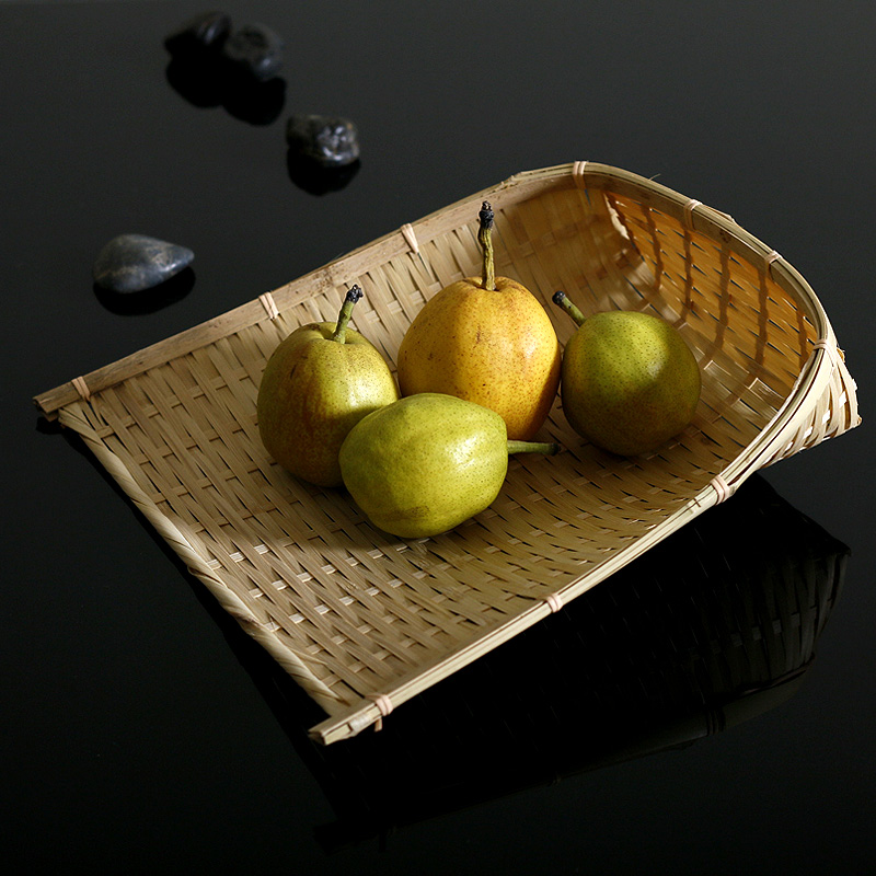 Natural color oblique mouth shovel dustpan shovel fry basket pure handmade bamboo woven snack fruit basket sushi snack plate plate