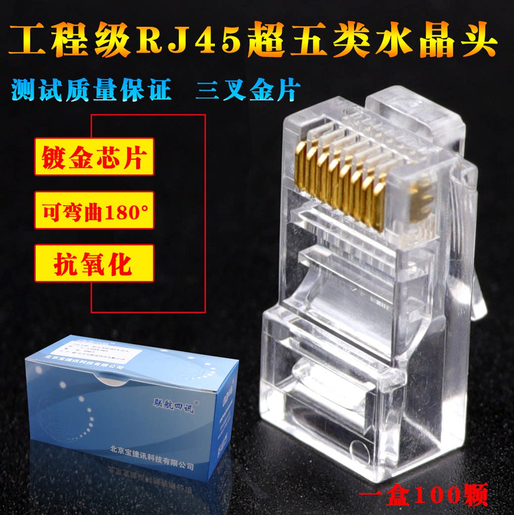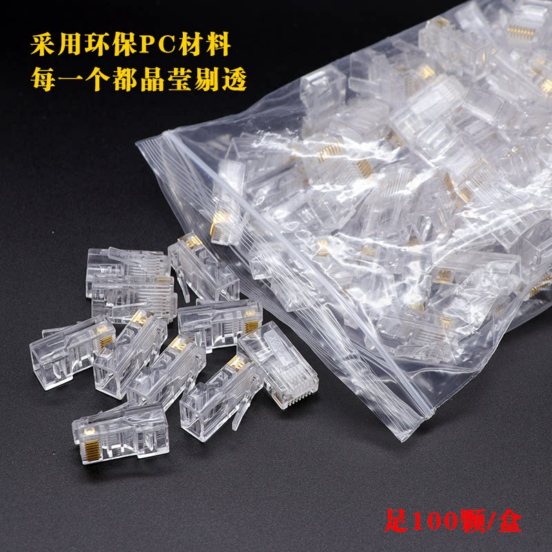 Super five unshielded RJ45 crystal head network 8p8c gold-plated crystal head computer network cable connector 100 boxes