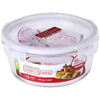 Official website flagship store Lock lock lock glass fresh-keeping box Round microwave oven heating fresh-keeping bowl lunch box 950ml
