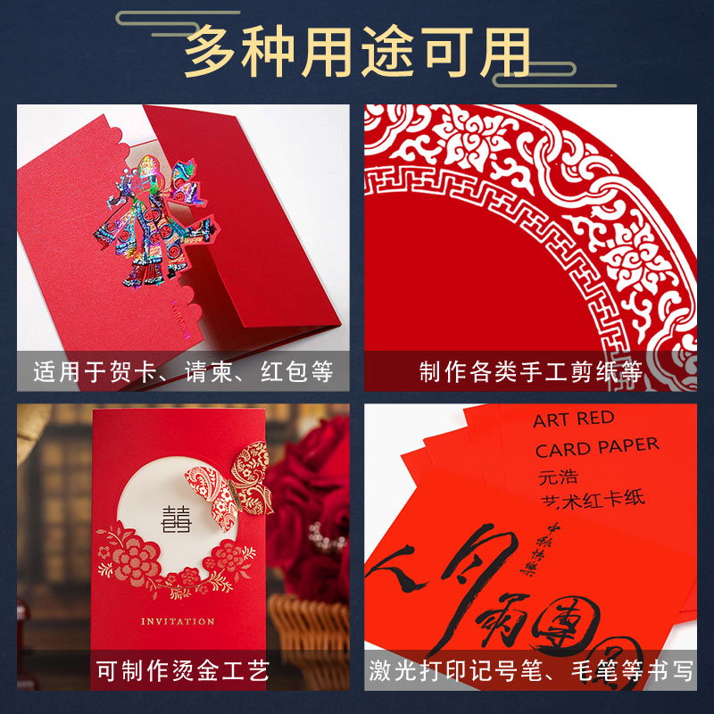 A4 red cardboard Chinese red handmade cardboard single face double sided handmade paper big red A3 large Zhang student nursery blank greeting card wedding invite Cambodia Heqing red paper cut paper 4k to write hard paper jam
