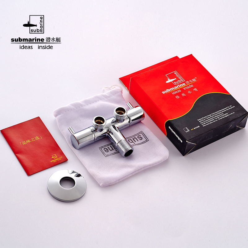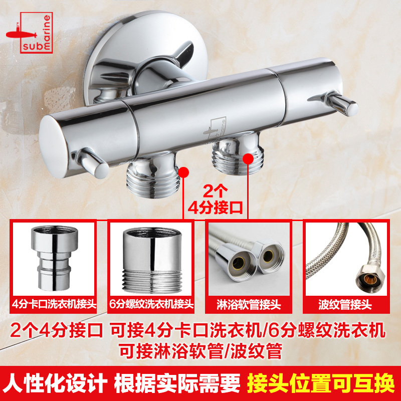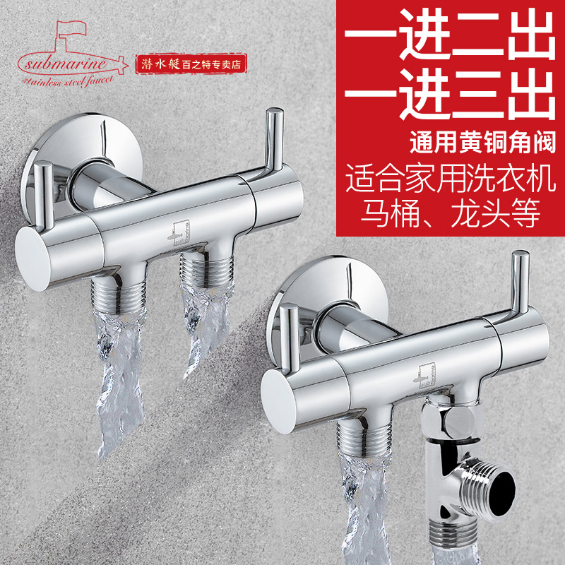 Submarine one in three out angle valve Three-way four-way water valve double cut multi-function washing machine faucet double switch