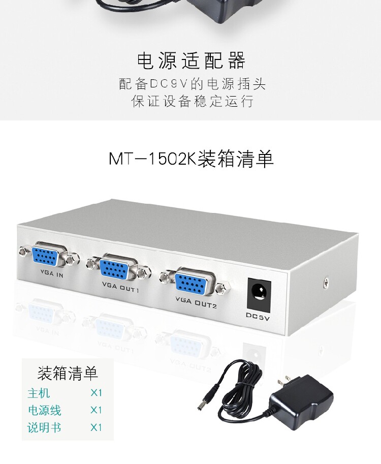 Maxtor dimension moment MT-1502-K VGA video splitter VGA one host two monitor splitter