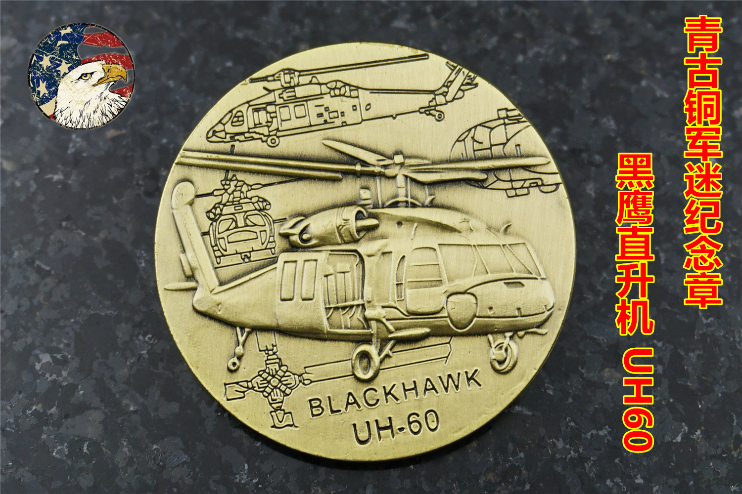 U.S. Army Black Hawk UH-60 Helicopter Antique Bronze Commemorative Coin Military Fan Collection Medal