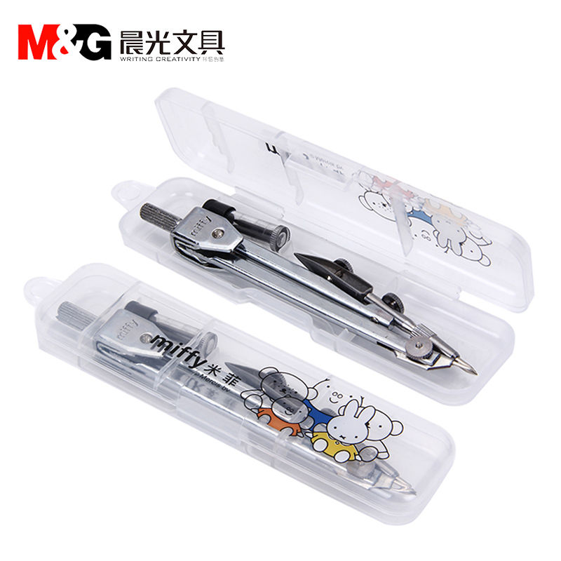 Morning light Miffy metal compass lead core 2-piece set FCS90803 silver drawing design Student compass compass Students with junior high school students ruler drawing tools drawing compass customization