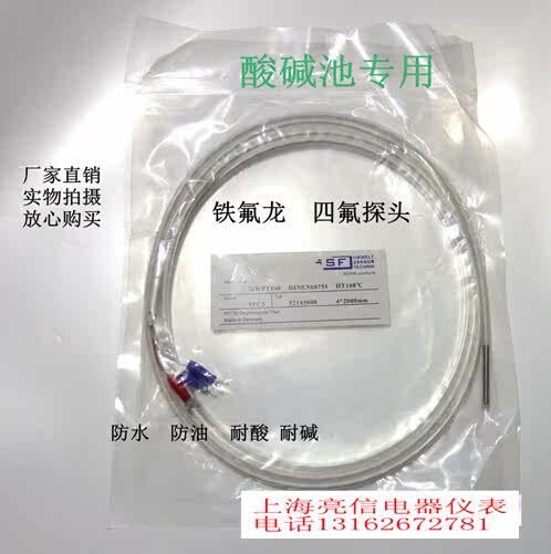 Anti-corrosion Teflon PT100 thermocouple resistance temperature line temperature sensor probe acid and alkali resistant electroplating factory special
