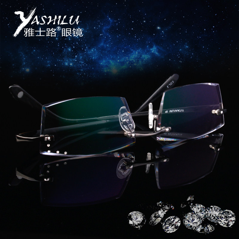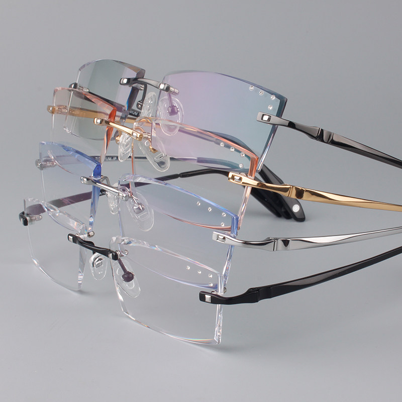 Yashilu Korean style glasses frame with diamond cut edge pure titanium frameless with power myopia glasses men's glasses 009
