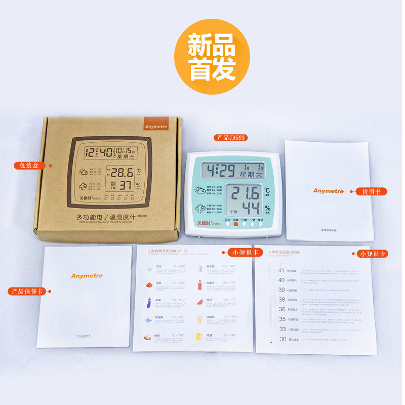 Virtue JR593 electronic household temperature and humidity meter with calendar imported movement second generation upgrade