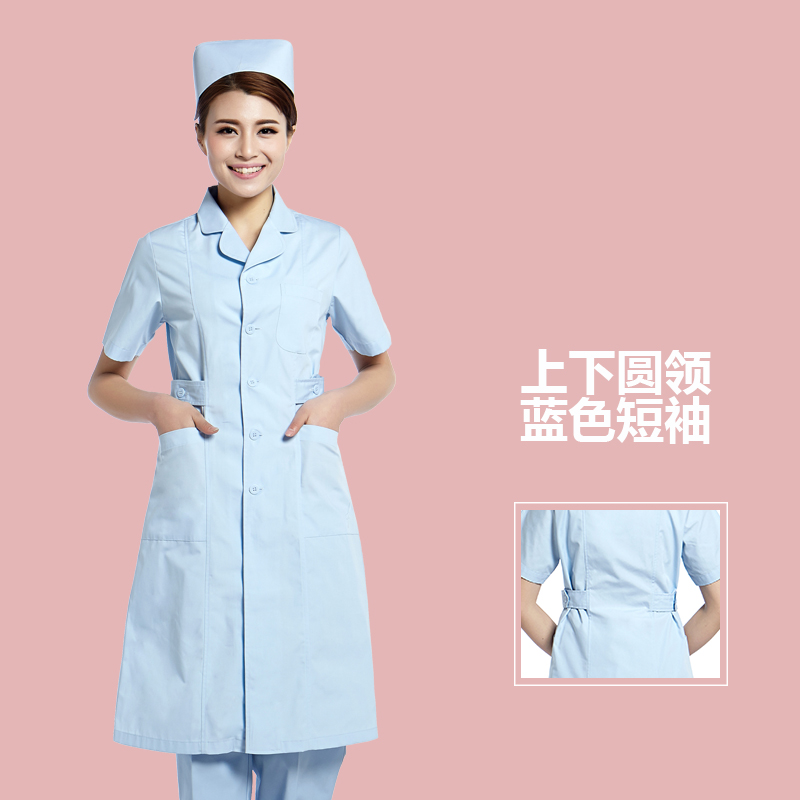 Nurse Serving Round Refuting Head American White Short Sleeve Nursing Uniform Round Refuting Head Summer Pink HSX-10 Nurse Suit Round Refuting Head Summer Light Grey Blue HSX-14