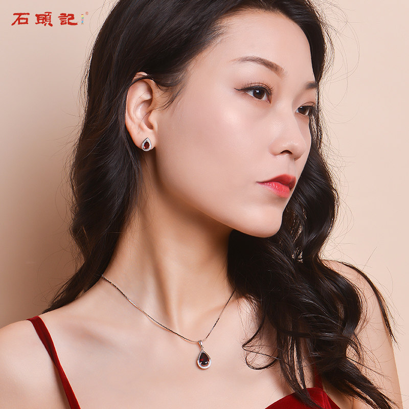 Stone Record Water Drop Shape Amethyst Garnet Topaz Necklace Pendant Women Accessories Short Necklace Summer