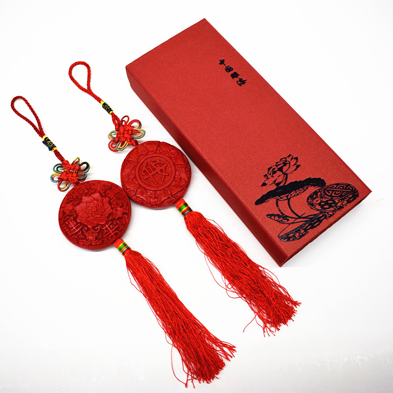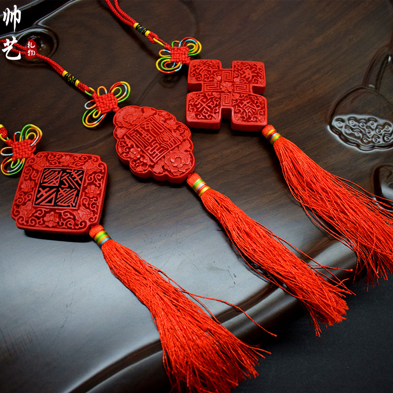 Beijing traditional lacquer carving lacquerware small Chinese knot car pendant piece jewelry Chinese style characteristic gift to send gifts to foreigners