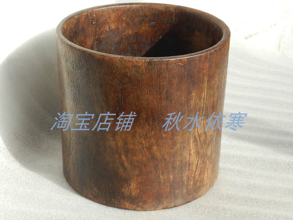 Hainan yellow flower pear pen holder roll cylinder large pen holder pen sea old Wen house Ming and Qing old objects