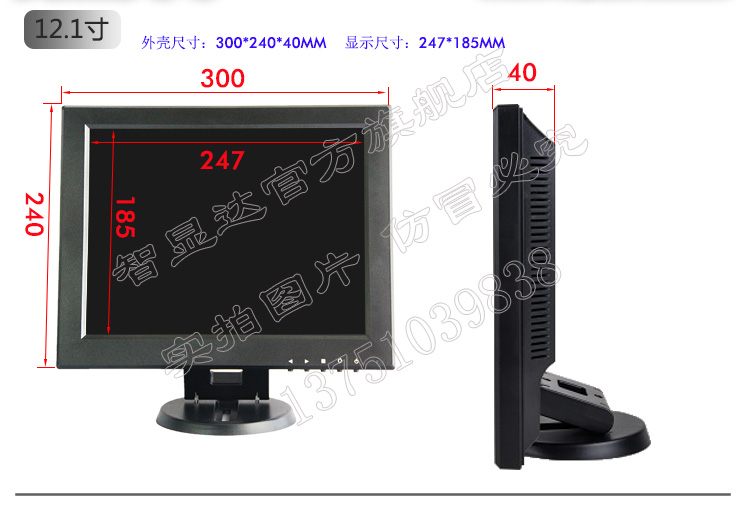 12 inch HD LCD monitor Industrial grade LED professional monitoring security HDMI HD VGA DVR monitor