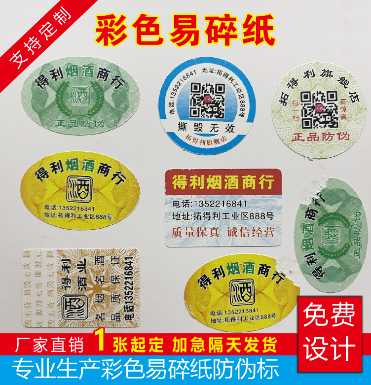 Anti-fake laser laser label sticker custom disposable fragile paper anti-tear and tear gas wine seal warranty set up