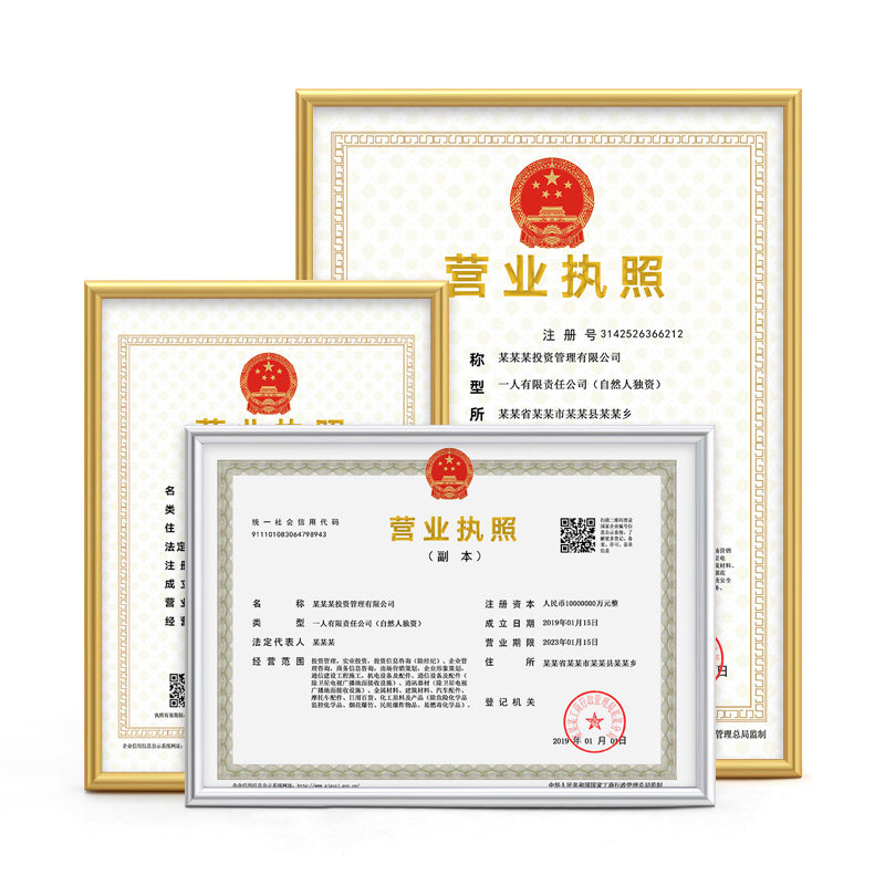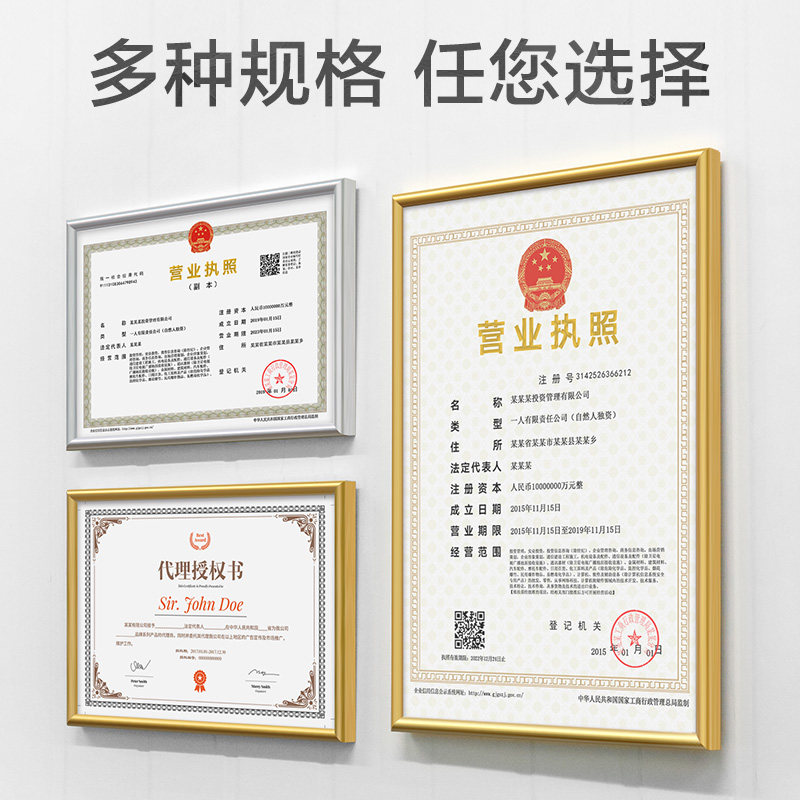 A3 original business license box (gold) A3 original business license box (silver) A4 copy business license box (gold) A4 copy business license box (silver) 8K frames (gold)
