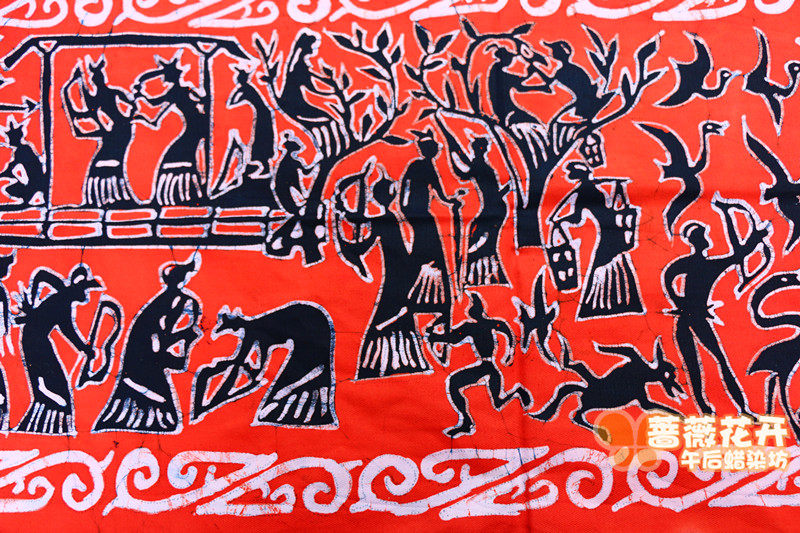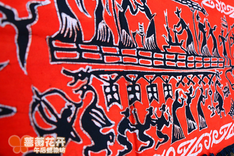 Yunnan Miao wax and dyeing wall-hanging painting Spring Festival festive living room home cloth art batik decoration 44 * 191cm