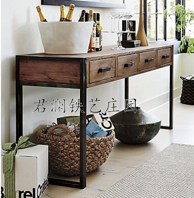 American loft retro desk antique and old porch table porch cabinet drawer table solid wood porch table iron art table