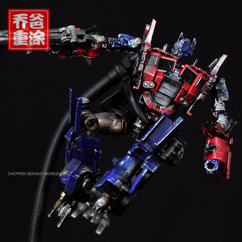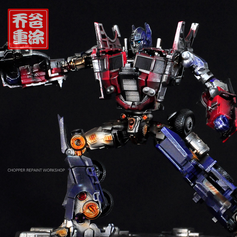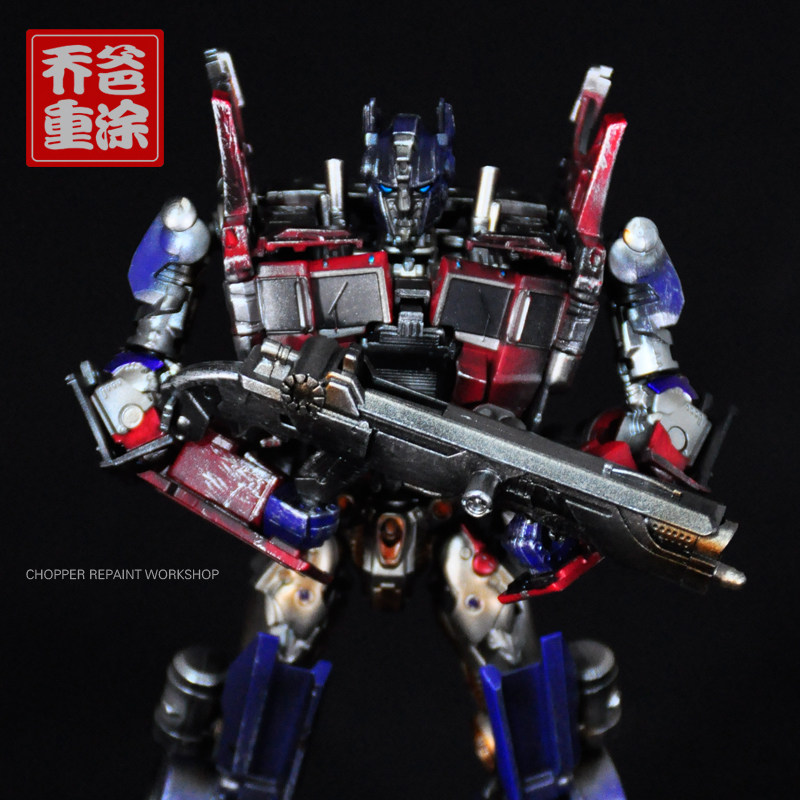 Dad Joe repainted the Transformers movie 4 V-class Optimus Prime flat head war damage color change color metal toy