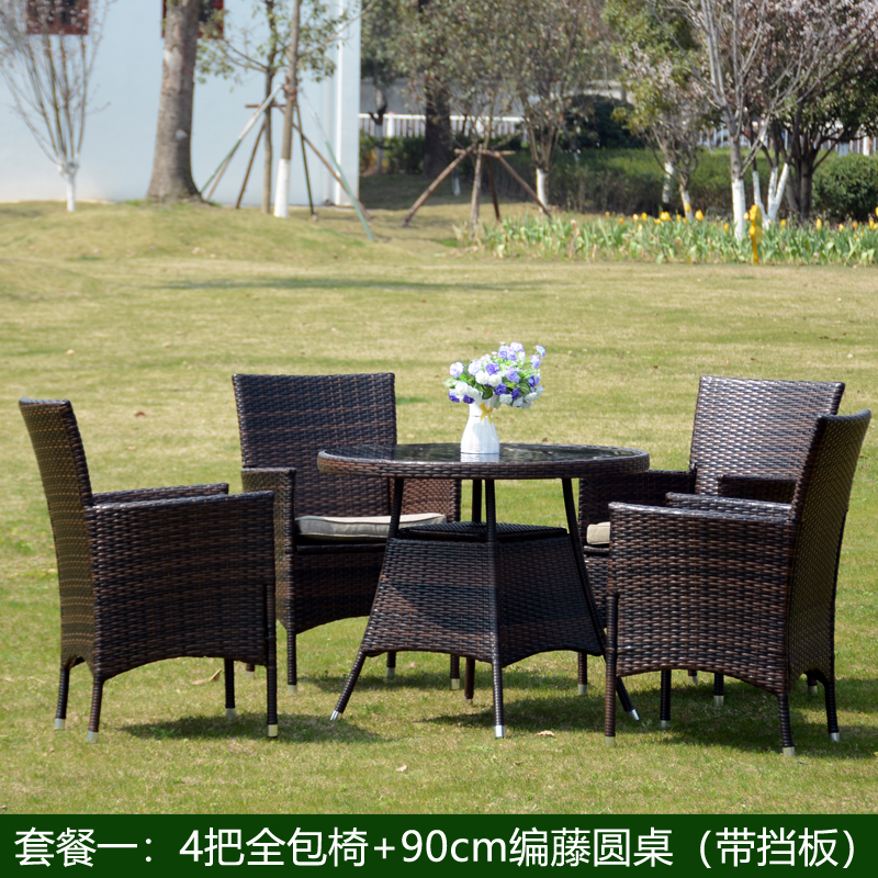 Anti-corrosion outdoor table and chair Five-piece open-air balcony table and chair combination Wrought iron outdoor table and chair European garden rattan chair