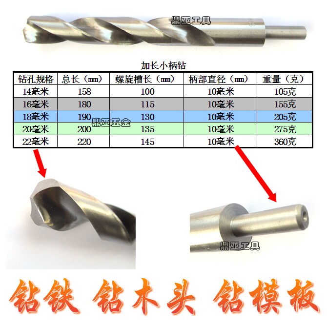 High Speed Net Small Shank Extended Hemp Drill Reduced Shank Wood Drill Steel Plate Metal Drill Bit 11-25mm