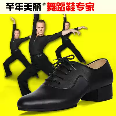 Leather men's modern shoes Men's social dance two-point bottom Latin dance square dance shoes National standard dance shoes men's dance shoes