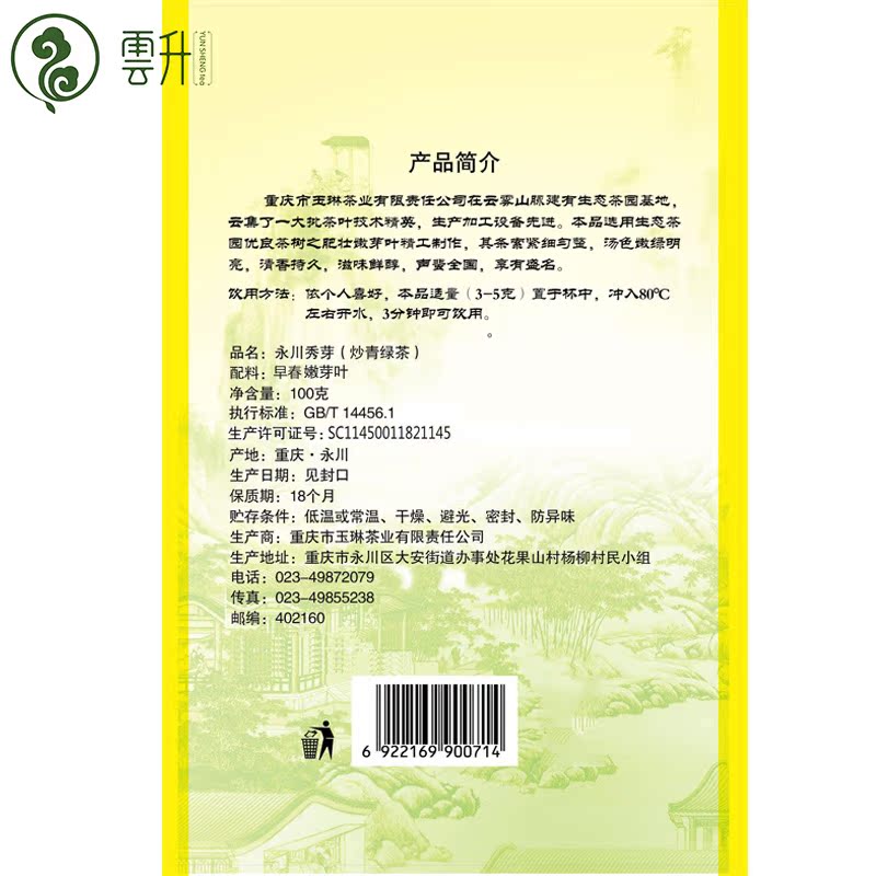 Cloud Lil Tea Clear Fragrance Type Early Spring Green Tea 2021 New Tea Ming Former Yongchuan Show Bud Fried Green 100g Bagged Tea