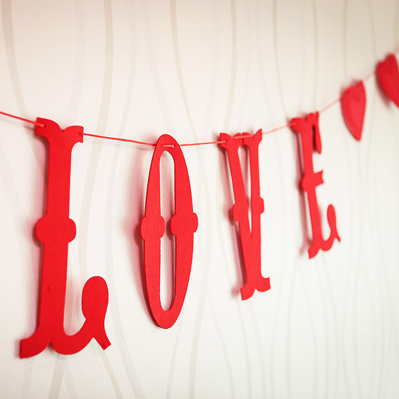 Unwoven cloth Thickened Love Happy Character Pendant wedding wedding New house Decorative Wedding house Placement Laheira Flower