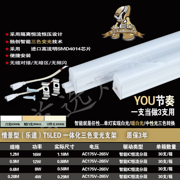 T5 Translucent Tricolor Integrated LED Ticked T5 Monochrome White Light 6500 Integrated LED Ticked T5 Monochrome Warm White 4000 Integrated LED Ticked T5 Monochrome Warm Yellow 3000