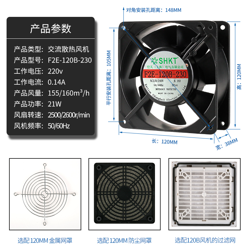 SHKT Shanghai Kaitian F2E cabinet cooling fan 220V power distribution cabinet power cabinet axial flow fan