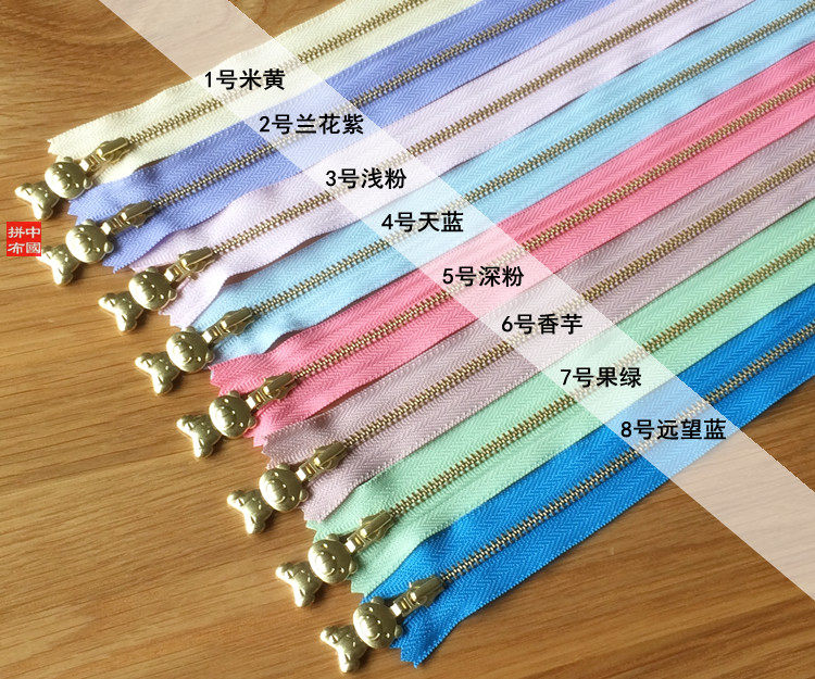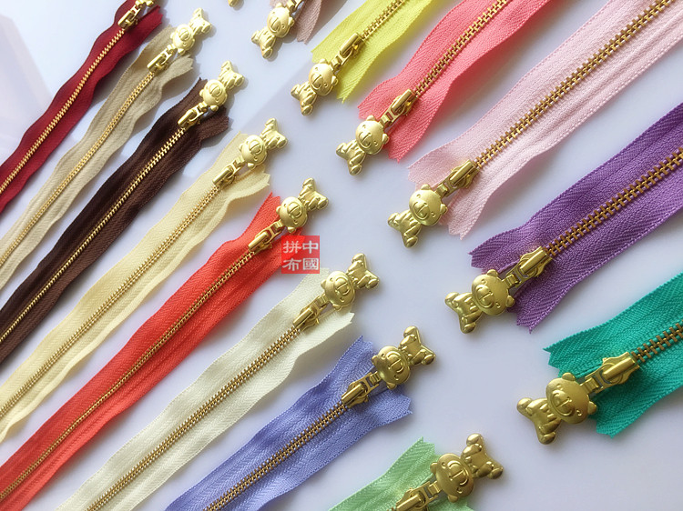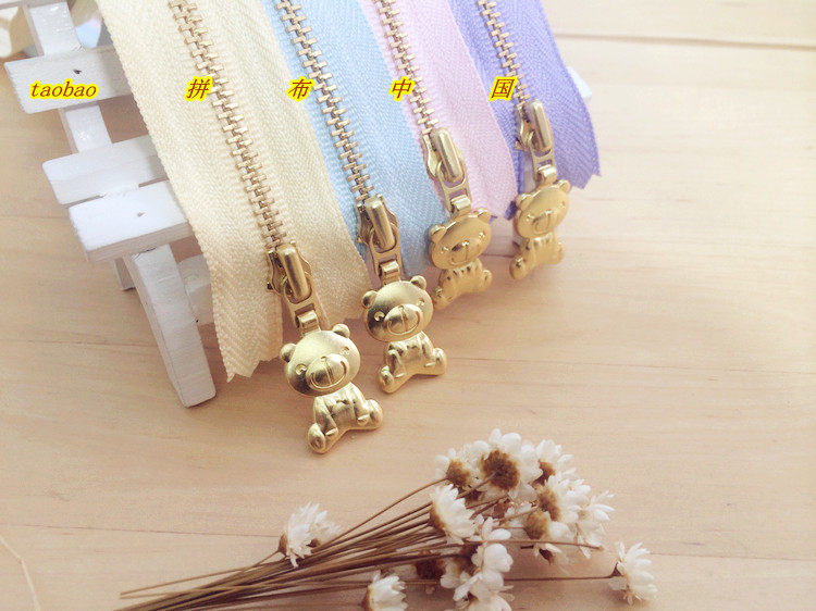 (5 fold) YKK pull chain (double face solid gold bronze small bear automatic lock pull head) 3 Number of teeth 50cm closed tail