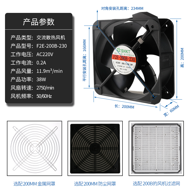 F2E-200B-230 cabinet cooling fan 200MM control box axial flow fan 220V distribution box 200MM