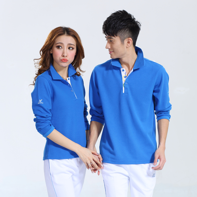 2020 new men's and women's lapel long-sleeved sports T-shirt spring and autumn cotton couple Jiamusi gymnastics sportswear