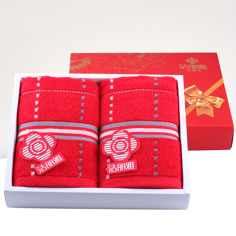 Jie Liya cotton towel 2 gift boxes beauty soft cotton cleansing wedding red face towel with hand-held