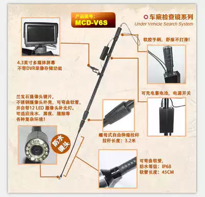 Camera car bottom inspection mirror video display 360deg full-view life searcher video car bottom inspection mirror