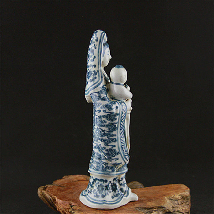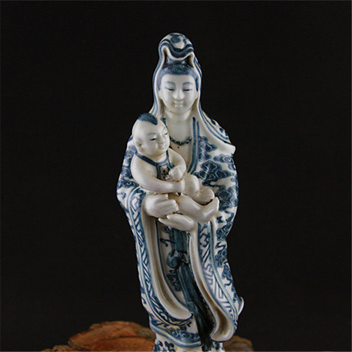 Blue-and-white Guanyin Bodhisattva Buddha Statue Fujian Guild Hall Signed Ancient Porcelain Cultural Revolution Factory Goods Antiques and Antiques Collection