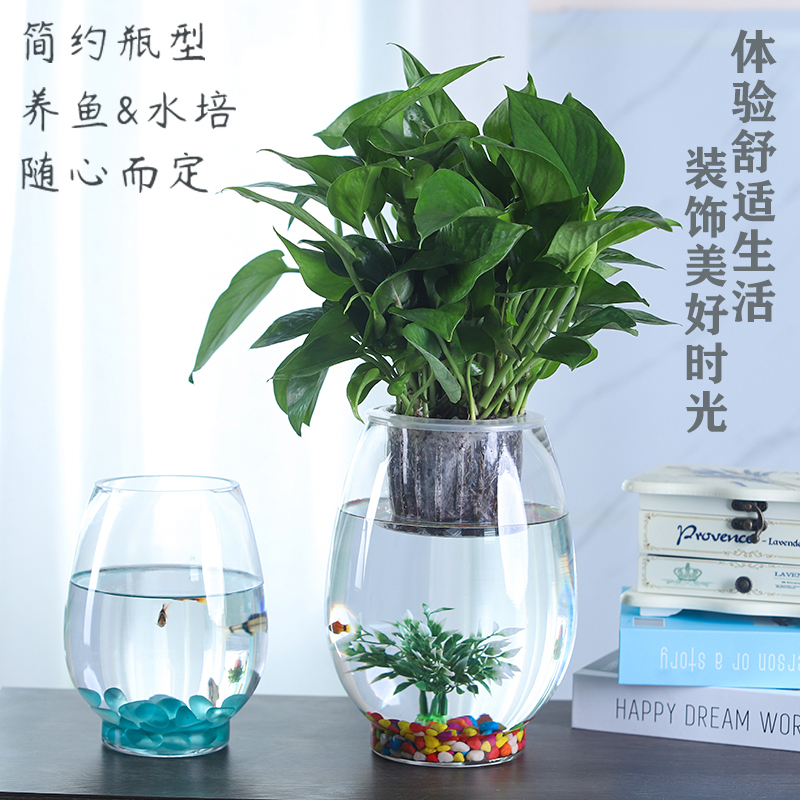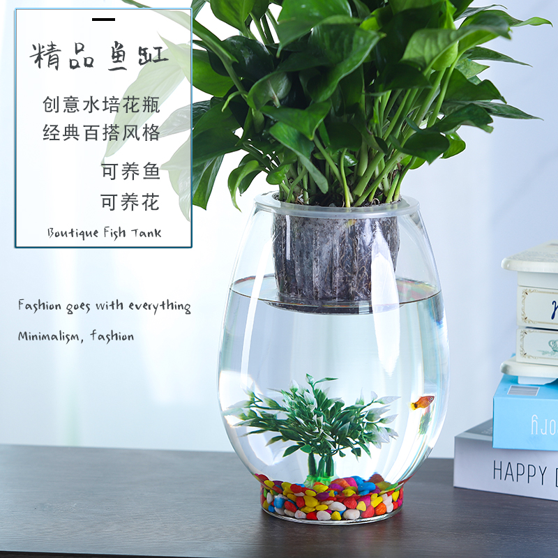 Fish tank transparent glass desk creative hydroponic round living room goldfish small turtle mini desktop small fish tank